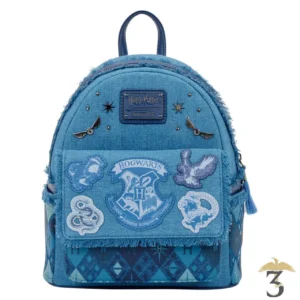 Ce sac bandoulière est orné d’un faux jean, de breloques métalliques, de pompons et de franges ! Le blason de Poudlard™ se trouve sur le rabat supérieur. Le corps du sac est entièrement orné d’un motif losanges bleu avec des images de chaque animal de Poudlard™ !