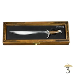 Présenté dans un coffret en bois vitré (25 × 15 cm env.), sur lequel figure en lettres dorées “Sting, Glamdring, Orcrist”, il incarne un hommage parfait à la trilogie Le Seigneur des Anneaux et Le Hobbit.