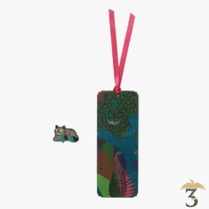 Le marque-page assorti présente des motifs recto-verso et un ruban en satin turquoise foncé, offrant une finition élégante et un contraste visuel marqué.